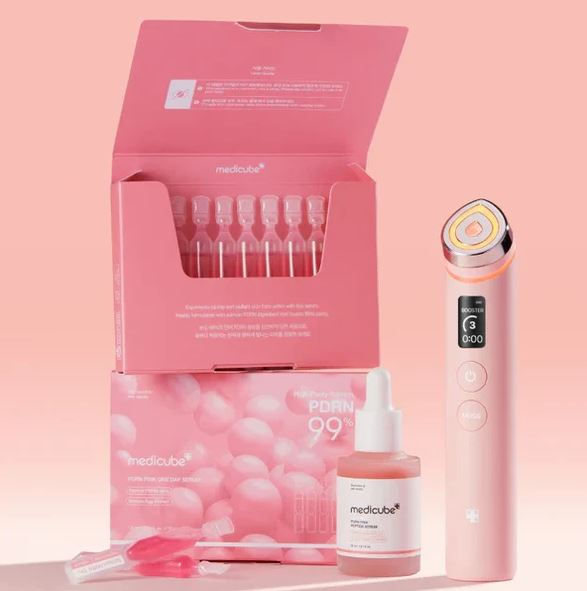 Medicube PDRN Pink One Day Serum is an ampoule formulated with a 99% high-purity Salmon PDRN that can be adhered to the skin freshly with the narrow and thin nozzle.